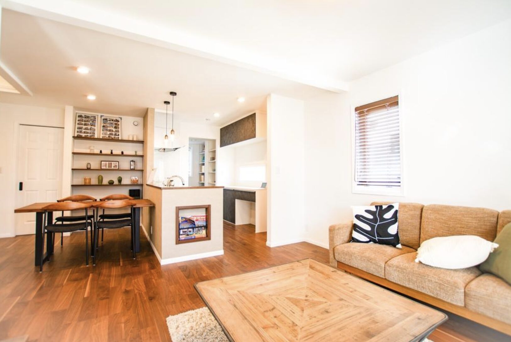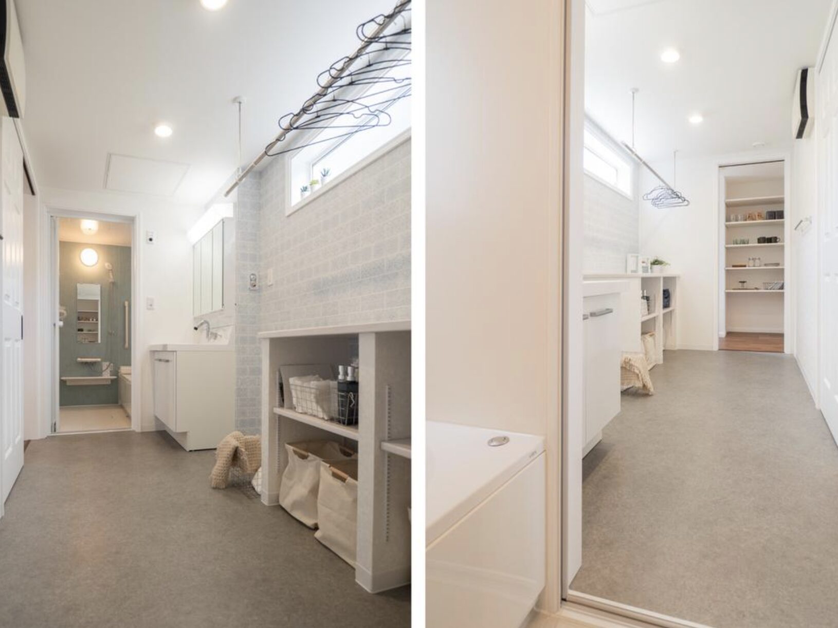 キッチンから洗面、ランドリールームへと無駄のない動線設計は、毎日の家事負担を軽減!家族みんなが自然に動けるストレスフリーな空間です♪