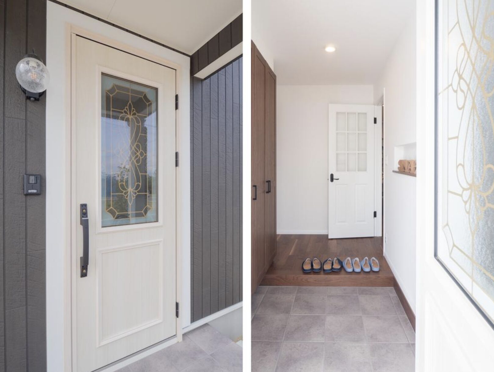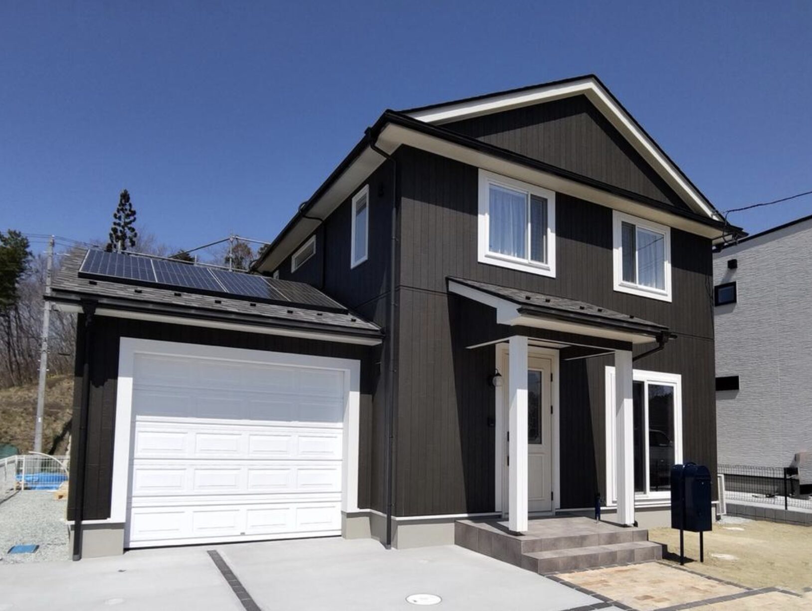 焦げ茶色や白色をバランス良く外観に取り入れ、