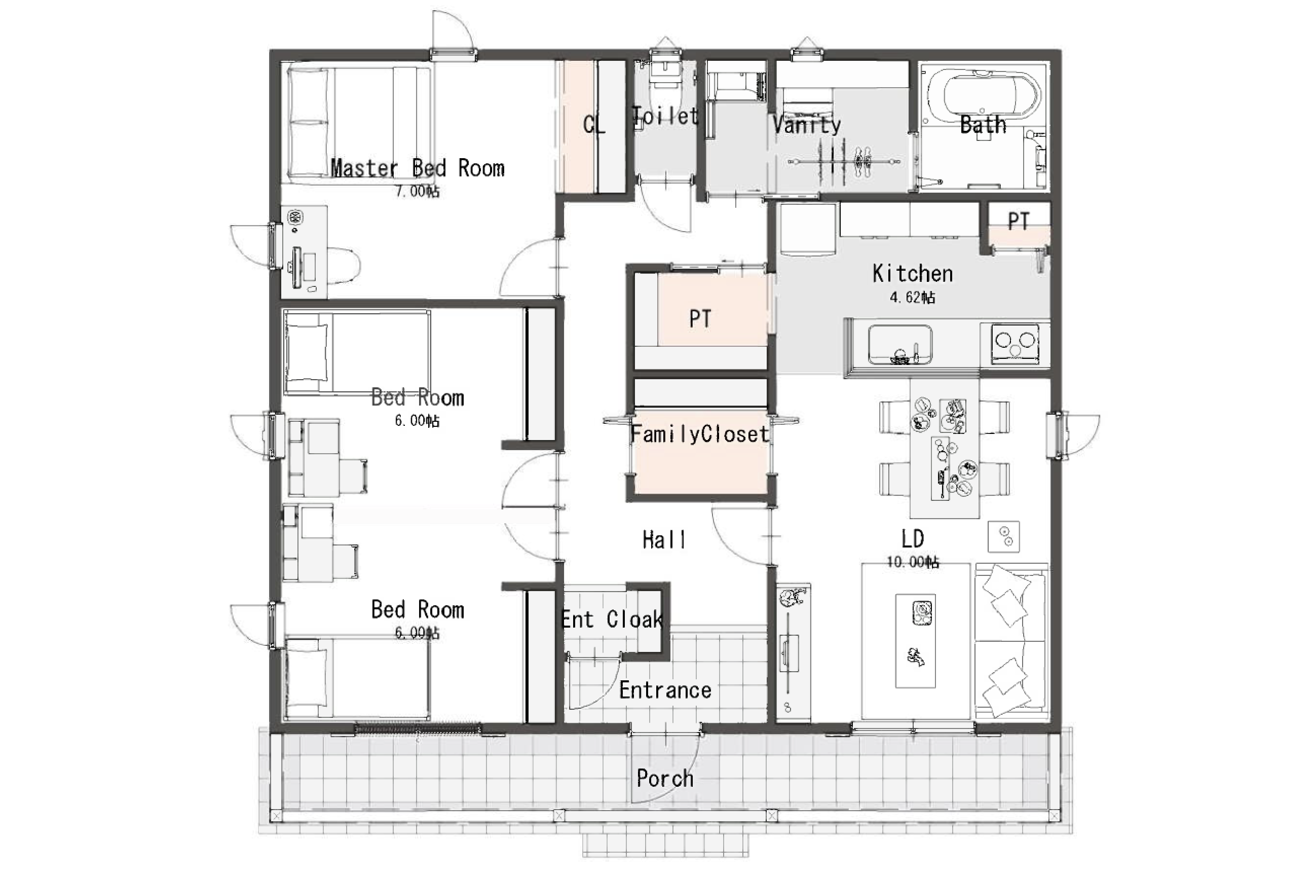 回遊型の間取りで、どこからも行きたい場所にスムーズに行き来できる暮らしやすさを実現!