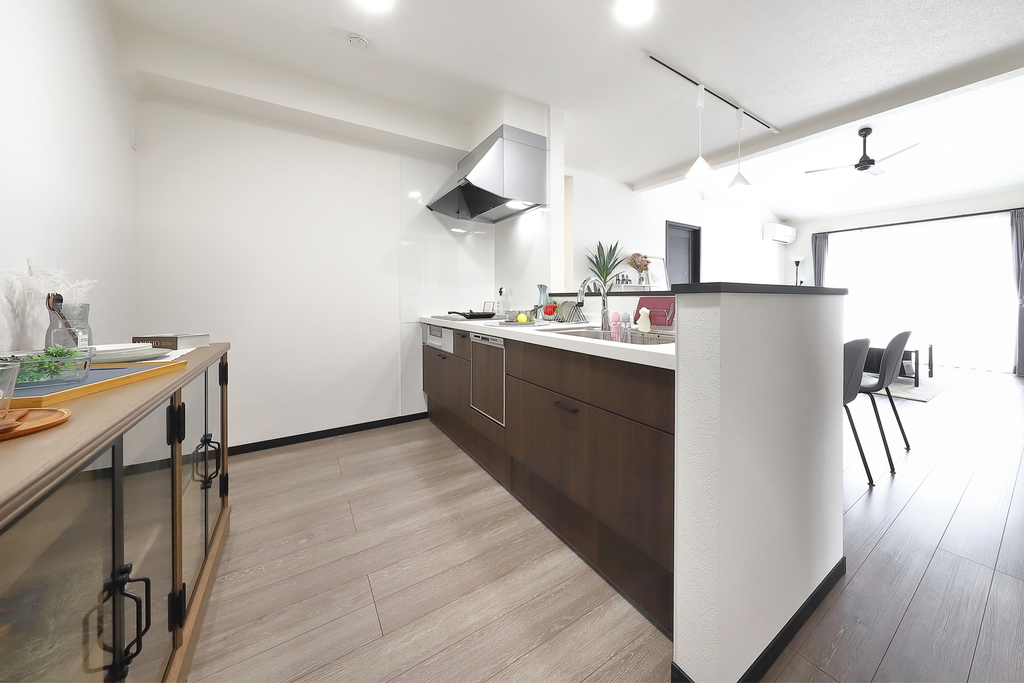 キッチンで料理をしながら、リビングで遊ぶ子どもとおしゃべりしたり、ダイニングでくつろぐ家族と自然に会話が生まれる、コミュニケーションが弾む設計です✨