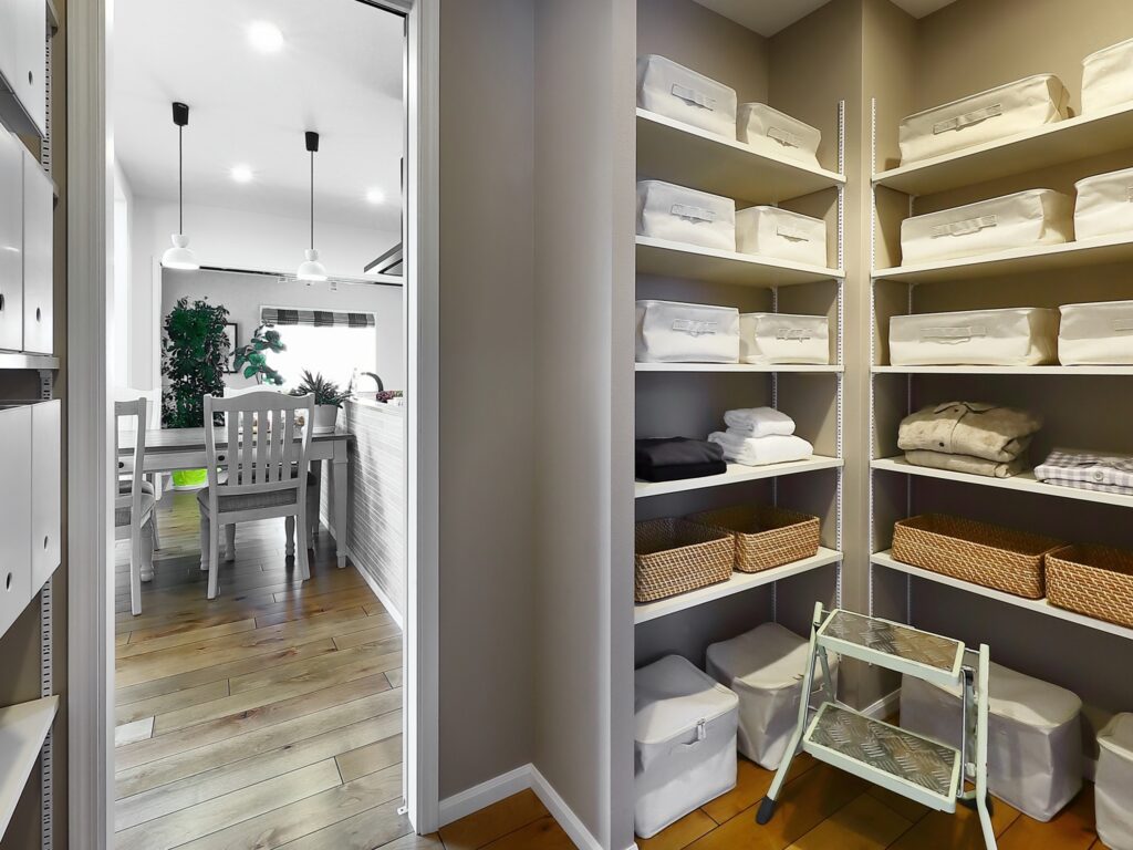 2WAYで出入りできるファミリークローゼットと、キッチン横のパントリーが家事の効率をグッと高める!