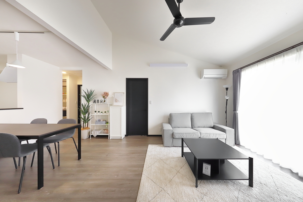 リビング・ダイニング・キッチンをゆるやかにつなげたLDKは、家族がどこにいても気配を感じられる心地よい空間。